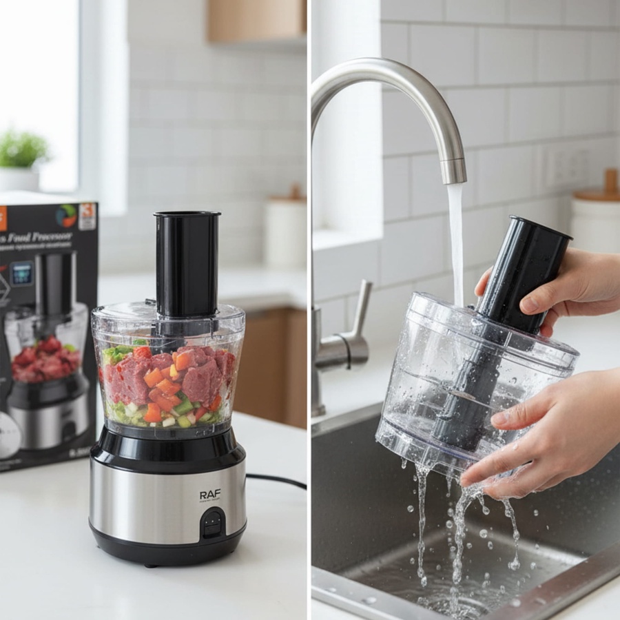 محضر الطعام RAF 3 في 1 مصمم عشان يساعدك على فرم وخلط وتجهيز المكونات بسهولة، ويختصر عليك وقت التحضير اليومي بدل الاعتماد على التقطيع اليدوي وتعدد الأدوات.