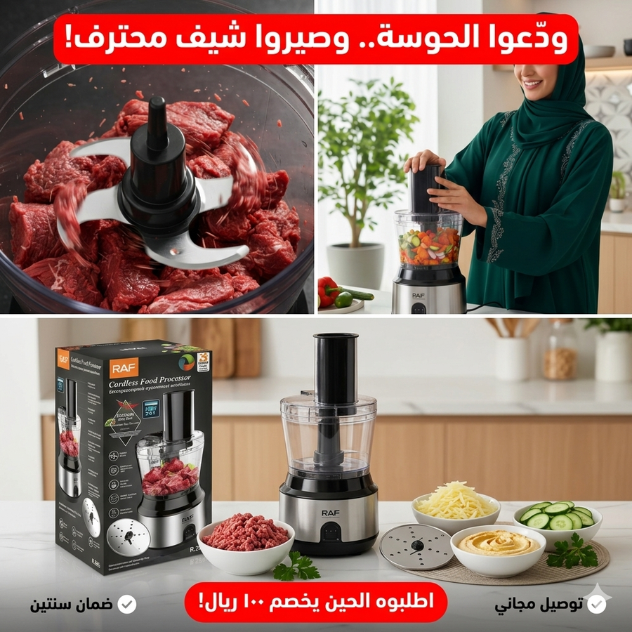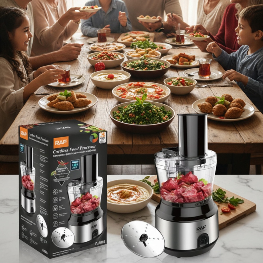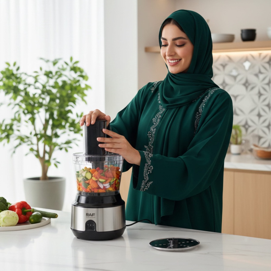 محضر الطعام RAF 3 في 1 مصمم عشان يساعدك على فرم وخلط وتجهيز المكونات بسهولة، ويختصر عليك وقت التحضير اليومي بدل الاعتماد على التقطيع اليدوي وتعدد الأدوات.