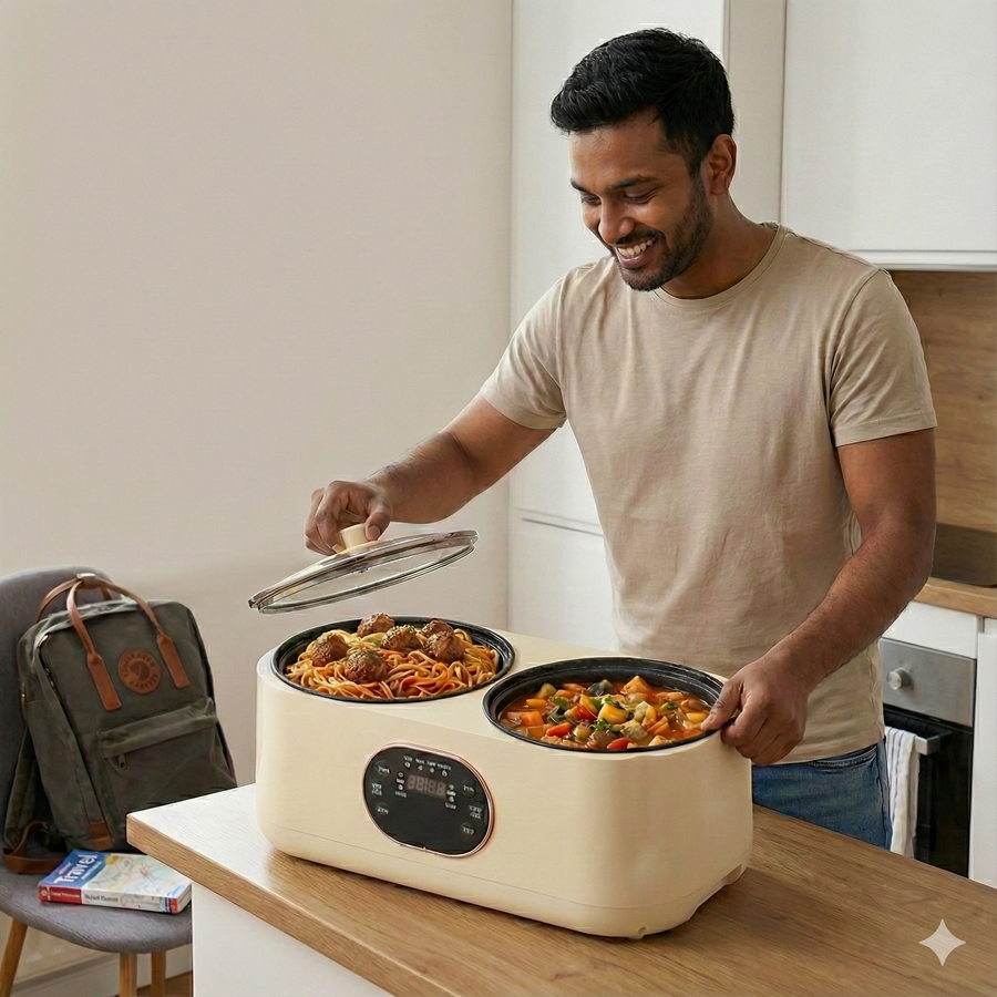 جهاز الطبخ المزدوج الكهربائي دينكس هو حل عملي وسريع لتحضير الطعام بفضل تصميمه المزود بعينين تسخين لمرونة أكبر أثناء الطهي. يوفر تحكمًا في درجات الحرارة لضمان توزيع متساوٍ للحرارة وأداء مستقر، مما يجعله مناسبًا للاستخدام المنزلي أو في الأماكن ذات المساحات المحدودة. يتميز بسهولة الاستخدام والتنظيف مع ضمان لمدة عامين يعزز الثقة في الجودة