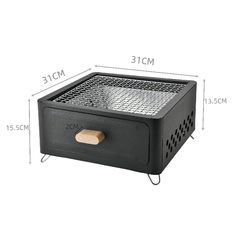 شواية وموقد فحم 2×1 عملية تتحمل الحرارة ومقاومة للصدأ والتآكل بكفاءة، تصميم أنيق يضيف لمسة جمال لأي جلسة. صغيرة وخفيفة، سهلة التنقل للكشتات والرحلات، مناسبة للشوي والطبخ وتسخين المشروبات في الشتاء. تكفي 4-6 أشخاص مع شبك غير لاصق وتصميم ثابت وآمن يضمن الاستقرار أثناء الاستخدام.